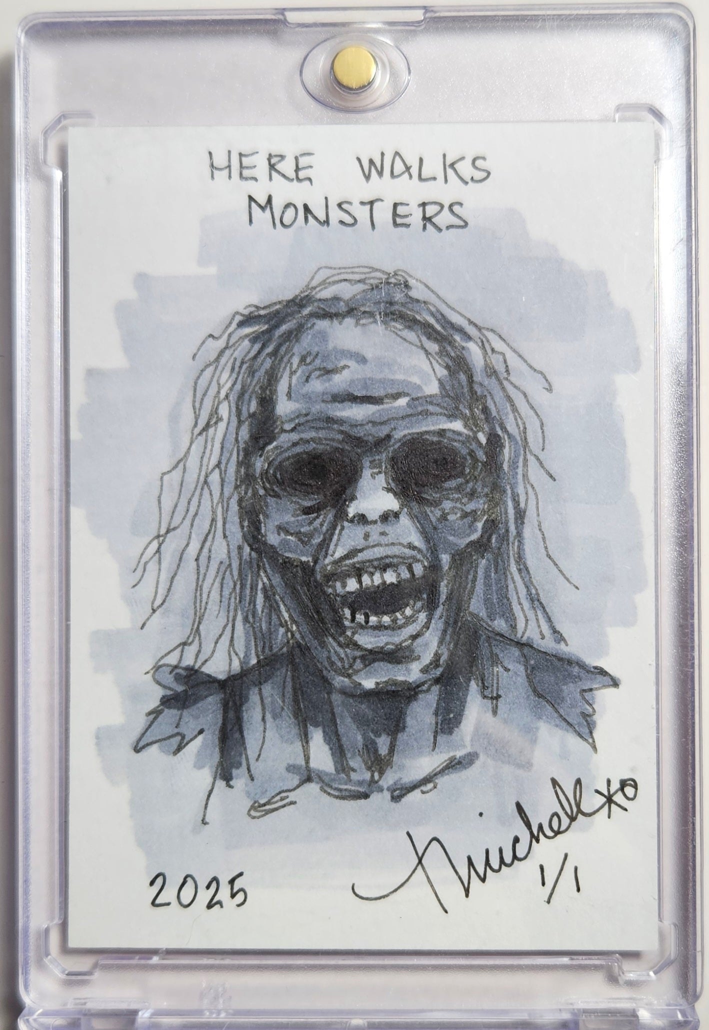 Here Walks Monsters - Zombie Sketch Card - Tina Michele